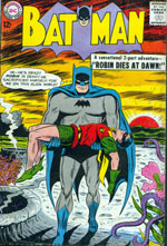 While fondly recalled by all those who plunked down their 12 cents for this issue at the newsstands four decades back, it was, undeniably, stories like "Robin Dies At Dawn" that almost fatally wounded the Caped Crusader himself, Batman, and not his kid sidekick... |