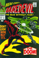 Way back when, during the formative stages of the emerging Marvel Age of Comics, Dr. Doom pulled a surreptitious mind-switch with the FF's leader, Reed Richards, in FANTASTIC FOUR #10. Several years later, suddenly bereft of their astounding abilities and once again facing the absolute ruler of Latveria, the not-so-fantastic foursome desperately turned to Daredevil in their most dire hour, a tale dramatically told in both FF 39 and 40. And then, finally, three years later, DAREDEVIL 37, 38, and FANTASTIC FOUR 73 completed this trilogy of sorts... |