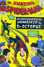 exploits. DC Comics of the era, particularly Weisinger's, had an overriding obsession with the dodgy job of protecting a hero's secret identity from being exposed. Story after story was built around (ultimately failed) attempts to discover these closely guarded secrets. Again, this tiresome theme showed up repeatedly in the Superman books, wherein either Lois Lane or Lana Lang--and sometimes both--would expend vast amounts of energy doing their very best to irrevocably jeopardize the selfless career of heroism embarked on by the man they purported to love merely for a little selfish satisfaction afforded them by finally being able to whip off Clark Kent's bogus glasses and shout a triumphant "Gotcha!" at the now-hampered Man of Steel for all the world to hear! (Imagine what this pair would've done with Joe Millionaire?...) It never quite played out like that, however, and any number of far-fetched "cheats" were at the ready to save Mort and his staff from printing the Big Reveal for true--robots, disguised colleagues (Hi, Batman!), magic, red kryptonite, dreams, and that singularly comical DC Comics concept, the Imaginary Story! While these non-canonical tales could be a great deal of fun, at a certain point, an over-dependence slowly but surely developed for this once-novel format that quickly overwhelmed the entirety of the Weisinger output, eventually causing the jaded reader to merely yawn upon the sight of the Big Red S in the throes of some pathetically preposterous situation or another whilst perusing the newest releases down at the corner newsstand. Now, this new upstart Marvel Comics Group and the books THEY were issuing, on the other hand... They had very little time for secret identities. Oh sure, in their earliest incarnations, Thor, Iron Man, and especially the Hulk, spent a fair amount of time preoccupied with safely guarding theirs, but they were the exceptions, not the rule. No one much cared who Steve Rogers was, for instance, and though the X-Men all had suitable civilian guises, they spent so much of their time in each other's company, whether in matching uniforms or not, that no one outside of their exclusive little circle had much of a chance to peek behind their dark blue cowls. And the Fantastic Four? Like DC's Elongated Man, they didn't even bother to hide the names on their driver's licenses from their adoring public!! But unlike the Stretchable Sleuth, they also didn't merely take up space as a back-up feature supporting one of their line's marquee characters, they WERE the line's marquee characters! Second only, in fact, to a young fella who went by the name of Spider-Man... Yup, good ol' Stan must've really been feeling his oats when he decided to tweak his competitors by gleefully emblazoning the claim, "Not a Dream!! Not an Imaginary Tale!" boldly onto the cover of ASM #12 (which, as my memory best serves, was the ONLY time that latter phrase ever made it onto the cover of a Marvel Comic, at least in the early going...) It's quite the dramatic tableau--a helpless Spider-Man's cowl being yanked off his head by a gloating Dr. Octopus, revealing the unmistakable face of Peter Parker to a group of startled onlookers, not the least of whom are his lady-love, Betty Brant, and his combination nemesis/pest/employer, J. Jonah Jameson!! Best of all, the cover proudly assured each of us eager readers that, yes, it was REALLY happening, honest to gosh! Wow! Was it any wonder that the antics of a Bizarro version of Perry White and similar stories of their icky ilk were rapidly beginning to pale in comparison?... Of course, it was a cheat. But unlike the many I'd already endured following the Kryptonian Kid's career for what was a mere handful of years up to that point, it was both a fully logical and emotionally a satisfactory one. Y'see, Doc Ock, based on evidence discovered in the previous issue's episode, knows there's SOME connection between Spidey and JJJ's secretary, so he brazenly kidnaps her from the Daily Bugle offices, issuing a public challenge--a dare, really--for the Wallcrawler to attempt her rescue. When the police and Jameson arrive on the scene shortly thereafter, they're surprised to find that the multi-armed baddie has made alarmingly quick work of his arch-foe. Given this unparalleled advantage, the renegade scientist pulls off his adversaries mask in full view of one and all. Spider-Man's greatest secret--revealed? Well, no. Allow me to explain... Parker, along with Jameson, y'see, was in the Bugle office when Octavious swooped in and made off with the helpless young woman. Everyone, aware of Peter's feelings for Betty, assumes (correctly) that he ran off to meet the Doc's demands to square off with Spidey so as to save his gal pal. But because the not-so-amazing one was defeated so handily, they all (incorrectly) assume that there's no way he could possibly be Spider-Man, but simply a love-sick teen-ager trying to help out in the worst way! The key to all this confusion? No one--save the reader, who'd been properly fed this pertinent information in the tale's initial pages--is aware that Parker is suffering from a 24-hour virus, an illness just severe enough to practically neutralize his spider-like abilities entirely! After this seemingly misguided but valiant effort, Peter is sent home, where his Aunt May summons a doctor to visit. The prescription is a good night's sleep, and wouldn't you know it? Voila! By the last panel on page nine, our hero's totally back up to his spidery snuff and eager to take on all comers! Which, of course, he does... Like I said, a cheat. But a glorious one, done for all the right reasons. And that's something Lois and Lana would be hard put to say, believe me... |
