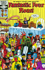 As I attempted to explain in this site's introductory essay (you've all read that, haven't you?), by the early eighties I'd gained some small amount of notoriety in the comics field as not only a creator but as a character as well. This odd turn events opened some unusual doors for me, and when the editor-in-chief of Marvel Comics, the afore-mentioned Jim Shooter, decided to celebrate the 20th anniversary of their flagship title with the publication of a one shot entitled FANTASTIC FOUR ROAST, he chose me as The Roastmaster!?! Released in 1982, this fun-filled endeavor consisted of a multitude of Marvel mainstays saluting the group that started the whole ball rolling. My job was to emcee the proceedings, write a story stuffed with as many gags as possible, and layout the art, dividing things up into neat one page segments, which would then be turned over to that particular characters regular artist for the finished illustrations. | |