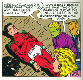 Take a good look at that panel. Originally the final scene in the Legion of Super-Heroes tale found in the December, 1965 issue of DC's ADVENTURE COMICS (#339), there's a unique, almost unsettling significance to it--but you won't read about it here... |