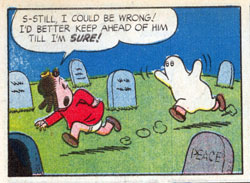 | For years, experiencing these familiar, beloved tales was as much a part of my late Octobers as getting candy corn stuck in my teeth. Each one was a collection of short stories, stories that were nonetheless connected loosely by a shared purpose and a specific progression of time--i.e., finding a pumpkin, choosing a costume, having a party at school, having another party at either Tubby or Lulu's house (or sometimes both), taking to the streets to Trick or Treat, returning home as the night ends, and finally, turning in for bed as the realization that Halloween is over again for another year painfully yet inevitably sinks in. | ![]() |