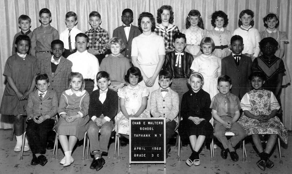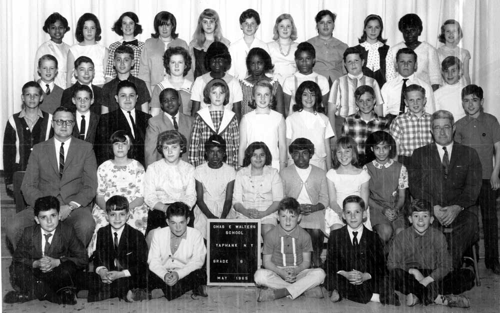Below, you'll find a series of class pictures, grades kindergarten through sixth, from the Yaphank, Long Island New York based Charles E.Walters Elementary School, commencing in 1959. Obviously, these are MY class pictures (that's me sitting next to the teacher in the initial pic, wearing the suspenders--you're on your own finding Waldo in the rest), and they're probably of little interest to anyone besides my immediate family and friends, but hey, what's a website for if not for a healthy dose of self-indulgence now and then? My motivation for rounding up these ancient artifacts came from another long-ago classmate of mine by the name of JoAnn. She posted her kindergarten class picture on her Facebook page, and even though it featured the exact same teacher wearing the exact same blouse sitting in the center, the date on the slate also being February 1959, I was nowhere to be found! I looked and looked, and though most of the other faces were familiar, my mug was conspicuously missing. So I went and dug out a series of scrapbook albums my mom had pasted all my class pictures in (under a thin sheet of cellophane), and was surprised to discover that MY group of kids was entirely different from JoAnn's! Apparently, our kindergarten's were half day classes, something I had long forgotten. When I informed her of this--AND the fact that I had all these photos in my possession--she encouraged me to post them on Facebook. Which I did. But over there, the image size is somewhat limited, so I wanted them posted here as well, so those who'd care to take a trip down (way, WAY down!) memory lane, might get a better look! As a point of interest, our school always had two classes per grade (with, unlike K, two different teachers). It appears from these photos that both classes make up the first and sixth grade pictures, while the rest represent only half of the students in grades two, three, four and five (the latter being the only one shot in color--AND featuring Mr. Erskine, my all-time favorite teacher, but that's a story for another time...). I made it all the way through high school with quite a few of these kids; I remember the names of an alarmingly high percentage of 'em. It's the ones that I DON'T--but whose faces nonetheless strike a chord--that haunt me. Or at least, mildly disturbs me. Maybe someday, with the help of the Charles E. Walters alumni, Facebook chapter, I'll be able to cobble together a complete (or near-complete) classmate guide? But for now, let's briefly return to the days of my beardless youth, shall we?... |