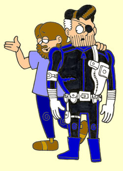 offer me work! I don't think he was entirely sold on my artwork, though, because he very specifically asked for a script only from me. That's okay--I'm not always sold on my artwork either!! And besides, considering what he had in mind, my pencils and pens were definitely NOT needed--the legendary John Severin was on board to illustrate a Nick Fury, Agent of S.H.I.E.L.D. parody, and I had but to say "yes" to afford myself the privilege of writing it!? Well, there are some jobs you think about, and some jobs you don't even need to spend a millisecond mulling over, and folks, this was clearly one of the latter! There was only one catch--Carl requested I turn in a full script. For you novices out there, that's when all the dialog and all the stage directions for each and every panel on each and every page of a proposed comics story is clearly spelled out for both editor and artist to examine before pencil is put to paper. The only trouble was, I'd NEVER done that before, and had severe doubts about my ability to do so!! As it is, I'm usually a one-man band--words, pencils, inks, letters, everything except the coloring--I do it all. Oh, sometimes I'd have an inker foisted on me, or a slicker letterer on the occasion where my standard scrawl made some legible-minded editor nervous--why, I'd even drawn a handful of scripts penned by authors other than myself. And, in several rare instances, I had other artists illustrate MY ideas, but only, please understand, in the Marvel sense. That is, they work off a plot supplied by yours truly, and upon my receipt of their pencils, I add the words. The few times I've tried that method, it's seemed to work successfully enough for me. But full script? I fretted, I panicked, and, frankly, I almost bailed, so totally convinced of my absolute inability to master--or even minor--this long traditional form of graphics story storytelling. And then, it hit me! The solution to my dilemma! It was SO obvious--I'd give Carl his story fully scripted, all right--AND fully drawn as well!! Am I a genius, or what? (As always, votes for "or what" are discouraged by the proprietors of this site.) When I proposed my idea to my newfound boss, initially he was a bit reticent to get on board. After all, he couldn't pay me any extra money for this unsolicited artwork--there wasn't enough in the budget to cover the added expense, he explained. No problem, I assured him--I didn't WANT the additional cash. (Okay, sure, I would've TAKEN it had it been offered, but...) I just wanted the flexibility of SEEING what I was writing, and if I was the one who had to scribble up the scenes to make that happen, fine. So be it. Slowly he came around to my way of seeing things, but once he was convinced that this would vastly improve the yock-ratio of the still-unwritten story--AND that this wasn't some sleazy ploy to pad my pockets--he agreed to let me turn the tale in in layout form. Yeah, yeah, yeah--I know that, in the short run, I undersold myself, but in the long run, just look what I've got to show for it!! And you know what? To this day, I've yet to EVER write a story full script!?! Whew--dodged THAT bullet!! So I sat down and wrote "The Retirement of Knick Furey, Ex-Agent of S.H.E.E.L.D.!" (I don't recall for sure, but the retirement angle may well have been Carl's--the rest I'm certain--for better or worse--is all mine.) After considerable initial brainstorming, dialog scrawled with a Bic pen onto typewriter paper, and thumbnail layouts roughed out in pencil, I settled in at the kitchen table, opened my 11" by 14" Morilla 100 page sketch book, and armed with a red Flair Pentel, produced the final copy for submission. The whole red line thing is a bit of an affectation, I'll admit. For those of you who aren't aware, the color crimson reproduces black, perfect, as it turns out, for copies. This way, you see, I'd have TWO versions of my artwork--the red originals and the black copies!! I did this for many years--ALL my KIDZ layouts are in red, for instance--and still do it upon occasion, though these days, in an effort to crank material out for you, my panting public, the layout phase is oft-times skipped. But not back then, not back on October 19th, 1987. That date sound familiar to any of you? No? Well, amongst Wall Street wranglers, that particular day came to be known as "Black Tuesday". It was one of those bad, bad ones, y'see--a fact I was blissfully unaware of since, in order to better concentrate on the task at hand, I uncharacteristically had the radio turned off the entire afternoon. My first CD player was still several years in the future and I was still deep into my AM talk radio phase, but that day Soupy, Howard, and the ever-irascible Bob Grant were silenced by my need to pump out parody. Hey, I'm sorry a lotta folks lost their shirts, but at least I wasn't the ONLY one losing money that day!?! |
