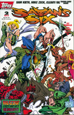 Mr. Mumbo Jumbo sprang to life in the back pages of Topps Comics SATAN'S SIX #2 (1993) fostered - directly and indirectly - by two of the greatest names in the annals of modern comics, Jack Kirby and Jim Salicrup!! Jack Kirby you may've heard of - King of Comics, penciling wizard behind the Marvel Age thereof, co-creator of the Golden Age's pre-eminent patriot, Captain America, driving force behind DC's Fourth World? The man has a list of credits that'd make Stephen King look like a slacker!! Which is probably why the folks at Topps Comics-you know, the baseball card people? - licensed some unused but still fertile ideas from the then retired Monarch of Mayhem. Recruiting many of his past collaborators to bring it to fruition and dubbing the whole shebang the "Kirbyverse", Topps unleashed it upon the public back in the early nineties. Ultimately not a sales success with readers, the stunt did bring a lot of positive publicity-as well as some well-deserved cash-to the elder Kirby and his queen, Roz the First. |
