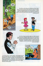 of the 1812 Overture!!!… That said, let's throw a little credit Kurt Busiek's way. Yes, folks, the award- winning scribe of the landmark MARVELS series. Only, y'see, Kurt wasn't always the toast of the comics biz--there were times, early on in his career, when he seemed to be just plain TOAST!?! Me, I always liked the way the guy could make his typewriter sing, and I told him so when we'd bump into each other at comic conventions back in the day. A friendship was struck, and one fine day he and his buddy Adam found themselves guests of Lynn and I at our palatial upstate New York manor (or rickety old firetrap, I forget which. We've since moved…) As always when comics folk congregate, one inevitably says to the other, "Whatcha working on?" Well, as I had nothing exciting on my plate at the time (this was after Lynn served a delicious dinner of beef stew), I was a little lacking in conversation. Then it hit me-I DID have this idea that I was toying with. It involved the merging of the four series I mentioned earlier-take the crisp, clean line of Al Wiseman's Dennis, the sitcom feel of John Stanley's Lulu, and just a touch of the sentimentality of Bob Bolling's Little Archie, apply it to the prototype Lee/Ditko Peter Parker, by far the most realistic teen in early sixties funnybooks, and the result? Why, Petey, of course!! Kurt seemed more than politely enthusiastic regarding my revisionist notion, and encouraged me to go forward with my attempt to write the Webspinner's pre-history. All well and good, but just how and where was I supposed to get this mildly radical concept into print? |