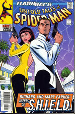 | It took over half a decade, but Marvel finally managed to hire an editor with esoteric enough tastes to consider bringing "Petey" back before the multitudes. Folks, I give you Marvel patron saint number two, Tom Brevoort. Tom was helming a then new retro series with the unwieldy moniker of UNTOLD TALES OF SPIDER-MAN, which, in a curious coincidence, was being scripted by the now-celebrated Mr. Busiek-and very well, I might add. I was more than happy to bring back "Petey" for a five pager in 1997's UNTOLD TALES OF SPIDER-MAN ANNUAL#2, and not long after, in UNTOLD SO ON AND SO FORTH Minus One. What's a Minus One? HOO boy, are you ever in for a long-winded digression!!?!…. | ![]() |