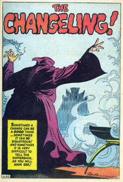 | Always there was a magnificently designed splash page, deceptively simple yet effective in imparting a very clear—though still intriguing—notion of what exactly was to follow on the next four pages. Artie Simek's bold title lettering and Stan Goldberg's moody color choices, in combination with Steve Ditko's masterful layouts and unique and otherworldly drawing style, made these splash pages, in my mind, bold--if sadly under-appreciated--artistic achievements! Look, I love Spider-Man as much as anybody—and Dr. Strange is no slouch, either—but I honestly cherish these short collaborations between Lee and Ditko almost as much as the misadventures of Peter Parker and his friends. And amongst a long list of triumphs to choose from, there are three tales that, at least for me personally, stand out above all others... | ![]() |