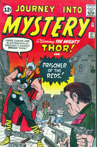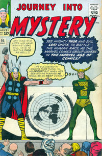 fifteen entries in that title alone. Over in JOURNEY INTO MYSTERY, when Don Blake embarked on that fateful vacation of his in the 83rd issue (August 1962), Stan and Steve were also on hand, and hopefully were able to distract the reader long enough, preventing him from pondering overmuch this one burning question: just exactly WHO spends his down time wandering through the mountains of Norway anyway? And so, for just over a year—fourteen tales total—the pair worked hard to make the customers forget any other wild flights of illogic that might've crept into the gaudily garbed God's adventures, ending in the September 1963 issue. |